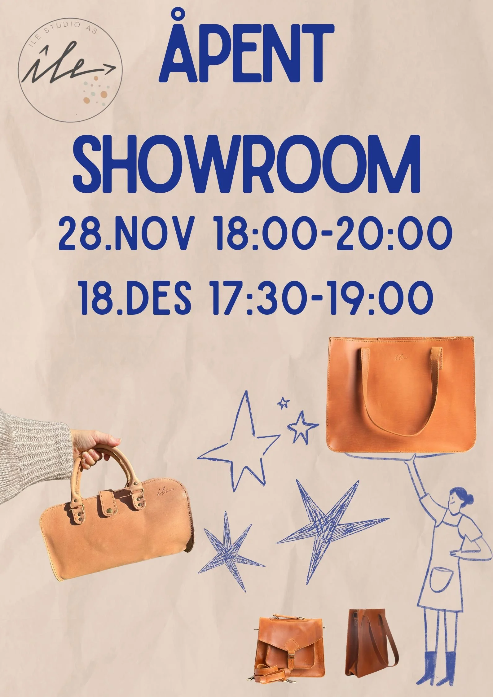 Velkommen til Åpent Showroom i Idrettsveien 45b, Ski. Jeg holder åpent for deg som ønsker å prøve, se og handle før jul. Det er åpent for henting av bestillinger og jeg lover en stressfri førjulskveld.