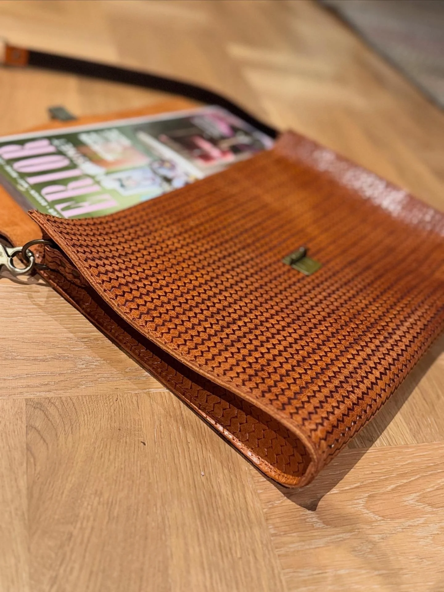 Alle bør ha en Ingrid-clutch. Den rommer det mest nødvendige, fordelt på tre rom, samt en glidelåslomme til bankkort, mynter eller nøkler. Med både håndlenke og skulderrem kan den bæres på flere måter og er like fin til hverdags som til fest.