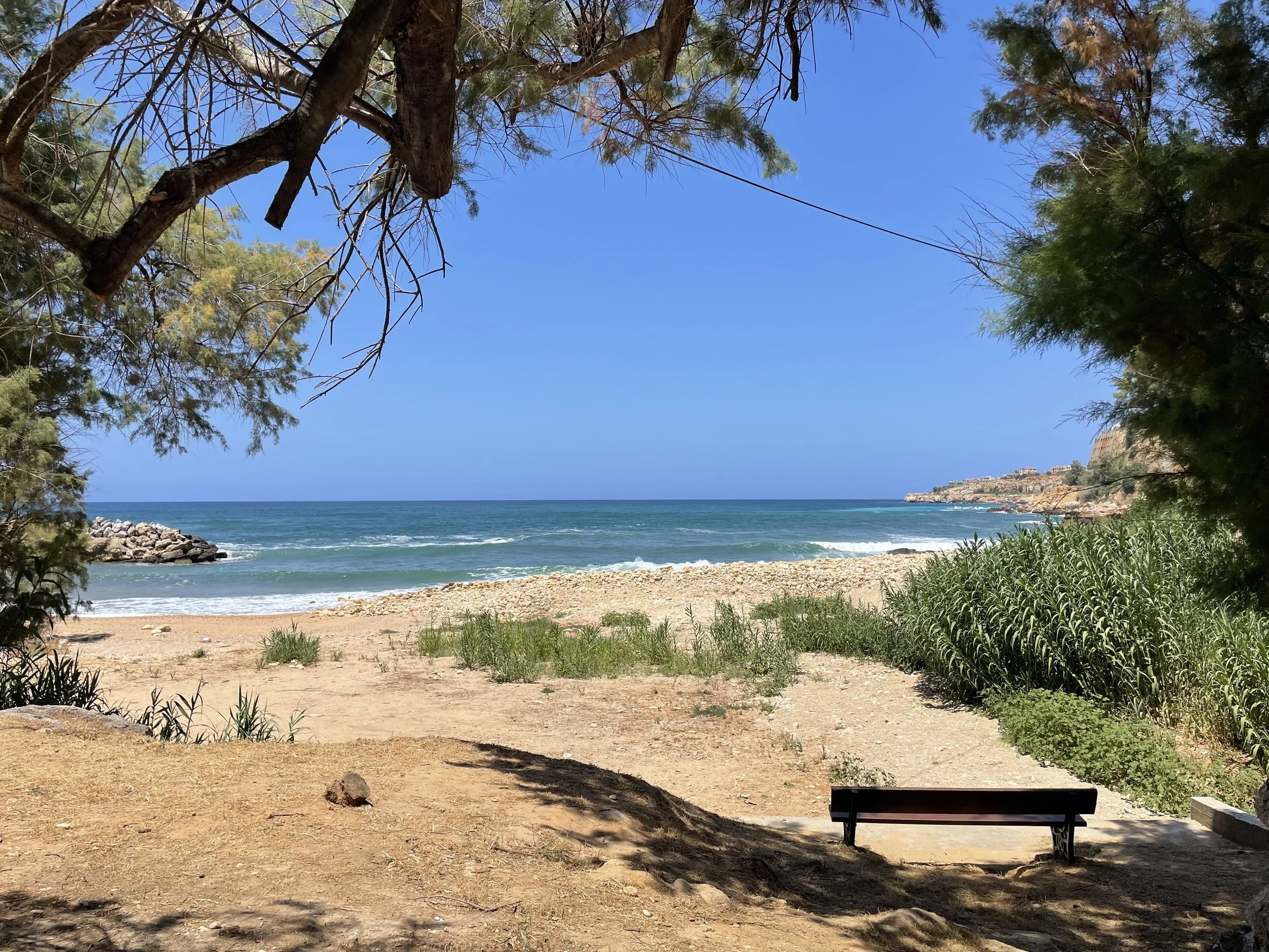 En ukjent strand på Kreta. Slikt man passerer når man kjører fra verksted til skinnprodusent til butikk til hotellet. Glede!