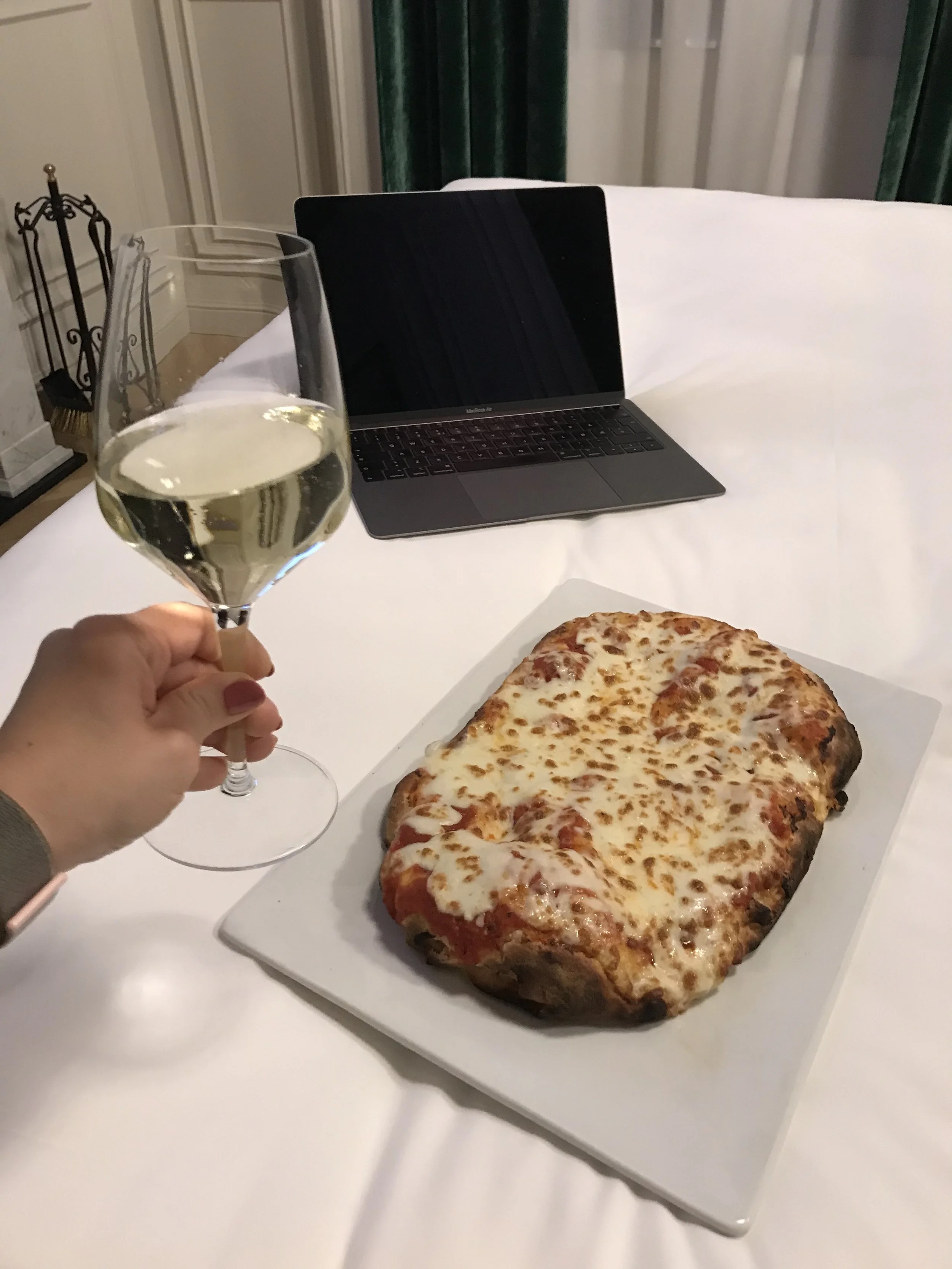 Dagen for avreise kom, grensene var åpne, flyreisen startet med en avisartikkel på sms fra en venn om at selskapet jeg hadde kjøpt flybillett gjennom hadde fått rødt flagg etter flere problemer med både kun der som ikke fikk dekket avbestillinger selv med riktige forsikringer, og at det var brukt useriøs arbeidskraft og andre ting. Ikke verdens beste nyhet å få mens man boarder. Men det gikk bra. Mellomlanding i Frankfurt, et sted man lett roter seg bort, noe jeg gjorde. Men på andre forsøk fant jeg mitt neste fly og ved ankomst i Milano, taxi til hotellet og et stengt restaurantkjøkken møtte jeg min første store opptur. De kunne slenge sammen en pizza Margherita til meg, og komme opp på verdens vakreste hotellrom med en pizza og en liten prosecco. Jeg hadde gitt resepsjonisten en klem om det ikke var en-meters-regel.